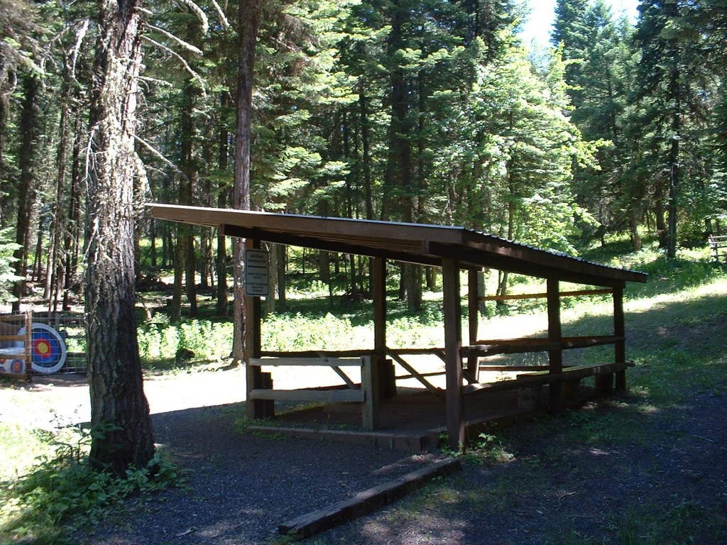A covered archery area helps provide safety boundaries and weather protection for practicing archers. Users are encouraged to provide their own archery equipment and targets.