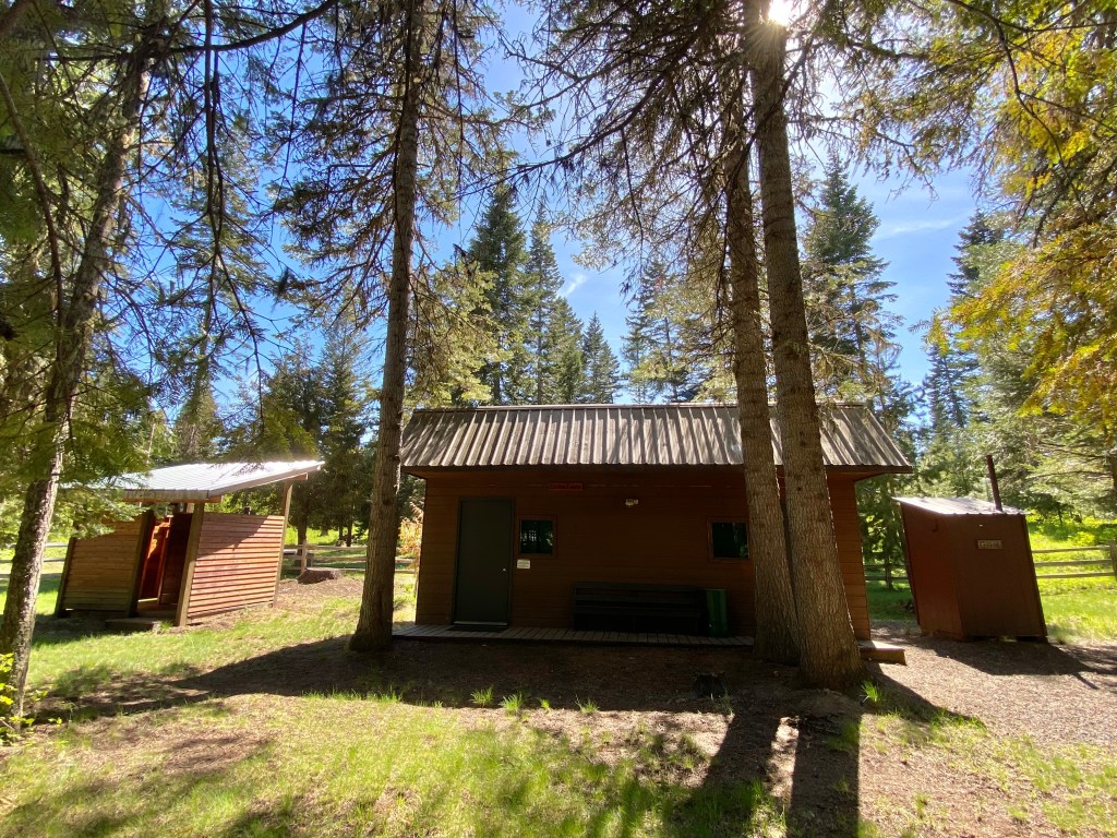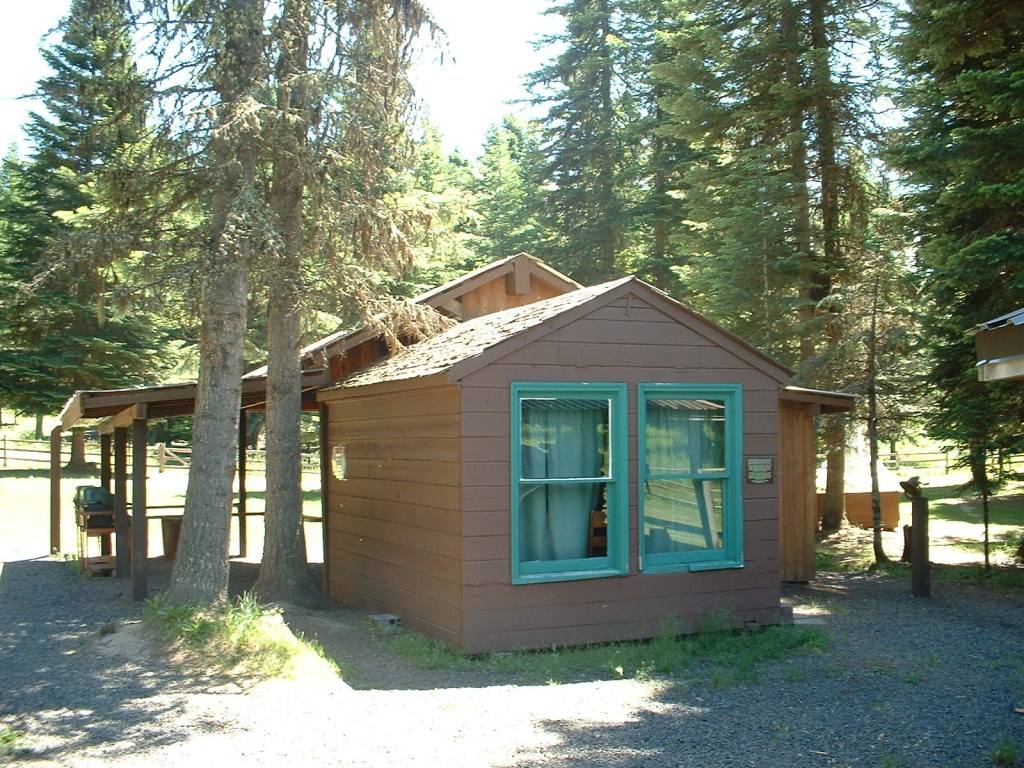 Two separate cabins can sleep up to 10 individuals per cabin. Cabins are divided in half, with two sets of bunk beds and a single bed on each side. Each cabin has a lighted outhouse facility and shower house adjacent.
